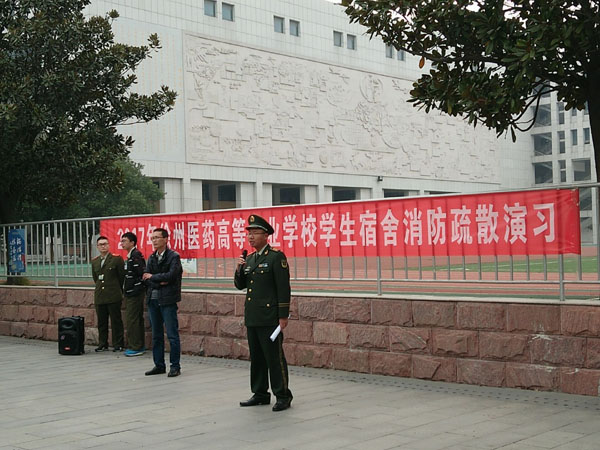 随后铜山消防大队汪参谋对此次消防疏散演习活动进行点评,并对学生进行了消防知识培训,详细生动的讲解火灾过程中如何有效自救、并重点讲解了学生在校园中的消防安全注意事项,同时号召学生爱护消防设施、学习消防安全知识等。