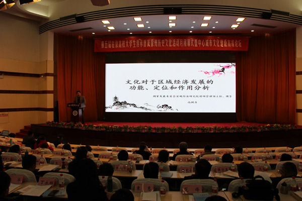 2017年11月30日下午,由中共徐州市委宣传部主办,市社科联、市文广新局、市旅游局、团市委联办,驻徐各高校承办的第五届驻徐高校大学生传承普及徐州历史文化活动月闭幕式暨中心城市文化建设高端论坛,在徐州医科大学学术报告厅隆重举行。国家发展委员会宏观经济研究院科研管理部主任高国力,国务院发展研究中心机关纪律检查委员会委员李国强,江苏省社科联党组副书记汪兴国,徐州市政府秘书长王浩、徐州市文广局、旅游局、社科联、团市委及驻徐各高校主要领导、组委会全体成员、各类获奖代表、学生代表等约300人出席闭幕式。我校袁龙副校长率学工处张华处长、校团委王秀杰副书记、指导老师何崇见、杨雷、李智和学生代表凡彬参加闭幕式。