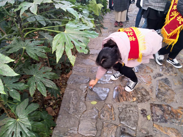 宣传环保意识,倡导文明行为。制药工程系春晖使者青年志愿者服务团赴云龙山开展义务拾捡垃圾,倡导文明行为活动。活动期间,同学们积极清理垃圾,用实际行动守卫绿色家园。并在通行的路上对随手扔垃圾的市民进行劝阻,倡导市民保护环境、文明自身行为。