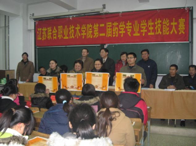 2008年12月19-—20日,江苏联合职业技术学院第二届药学类专业学生技能大赛在莫愁中等专业学校隆重举行。我校袁龙副校长领队赴南京参赛。此次技能大赛云集省内八所医药类高等职业学校、40名学生精英选手再次全力角逐角逐技能大赛桂冠。我校药学技术系组队以饱满的精神和良好的竞技状态全力投入本次大赛。