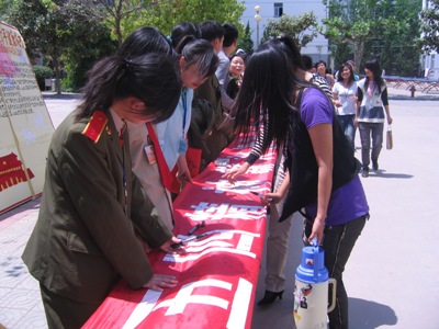 5月4日中午,由校团委举办的以“纪念五四运动90周年暨建团87周年”为主题的签名活动在校园内举行。