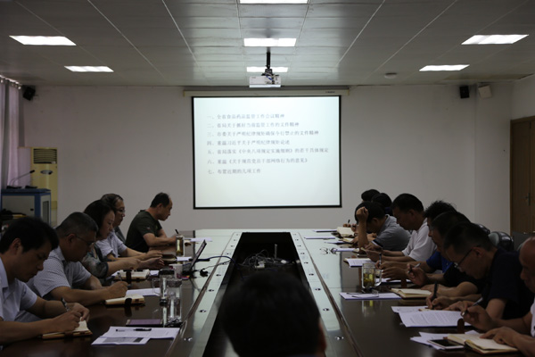 会议传达了全省食品药品监管工作座谈会、省局《关于抓好当前食品药品安全监管工作的通知》和落实《中共中央政治局贯彻落实中央八项规定实施细则》的若干具体规定等文件精神,重点学习了朱勤虎局长在座谈会上的重要讲话内容,着重把握“守住底线,加强监管,改革创新,促进发展”的总要求,明确了下半年工作的总方向、总目标和总任务。