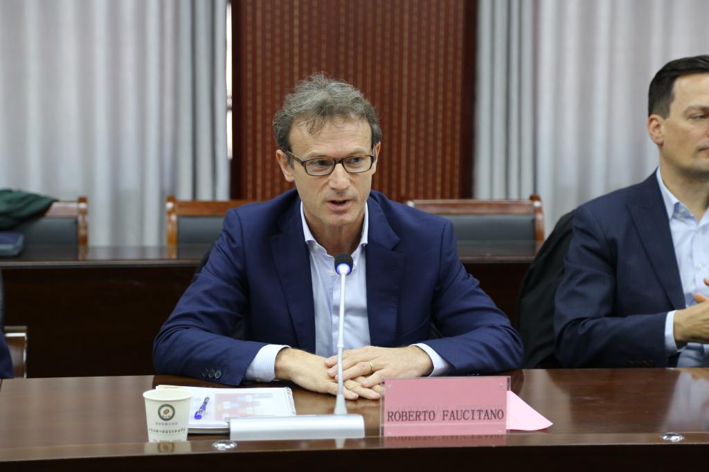 ROBERTO总经理一行观看了学校宣传片之后,在崔福军校长等领导的陪同下参观了学校实训基地和医药历史文化步道等校园文化景观。尹放东等公司领导对接学校科研、教务等部门领导,围绕科研项目合作和校企深度融合育人等内容展开座谈交流。公司生产部和人力资源部领导面向学校准毕业生进行了新一届合作班学员选拔。