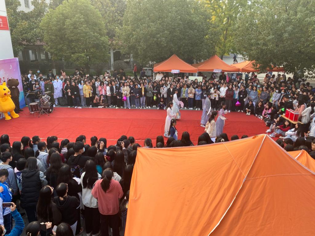 活动现场气氛热烈,既有武术、龙鼓、舞蹈、诵读、乐器演奏等文艺演出,又有血压测量、耳穴埋籽、书法、剪纸等现场体验,互动环节的有奖答题更是让现场观众惊喜不断。各个社团展位前,围满了前来咨询的一年级新生,学姐学长们热情、认真地为前来咨询的新生答疑解惑,通过图片、视频、现场演示等多种方式,展示自身的优势与特色,各个社团魅力绽放,为校园增添了一道靓丽的风景线。