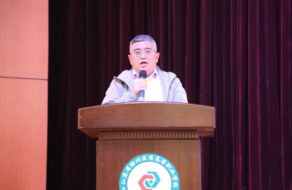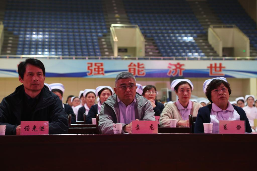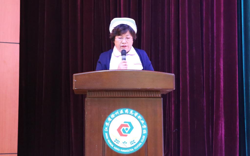 袁龙副校长作讲话,他代表学校感谢各位护理界同仁对学校的支持和帮助,并衷心希望全体护生热爱护理事业,珍惜学习机会,秉承校训,奉献博爱,不辱使命,用实际行动为人民健康保驾护航!