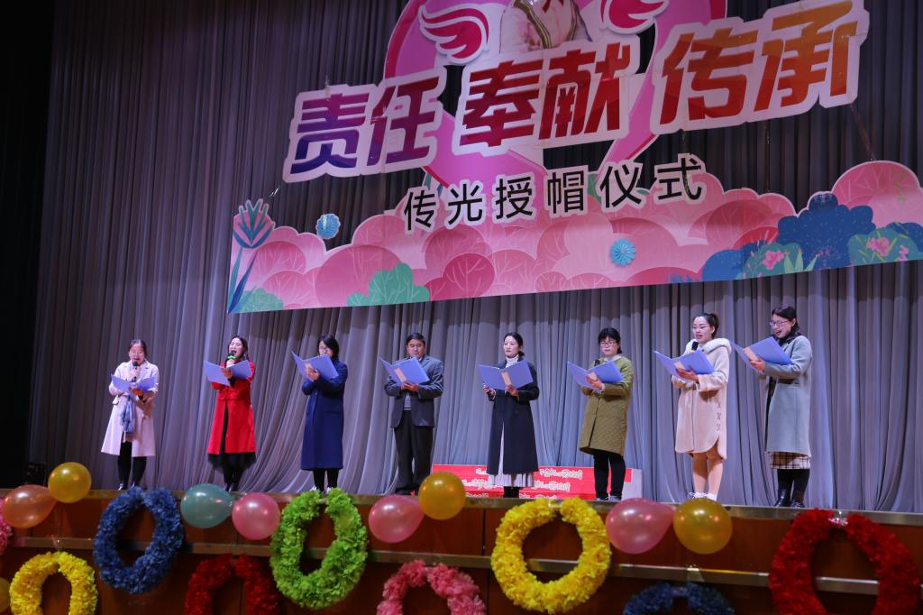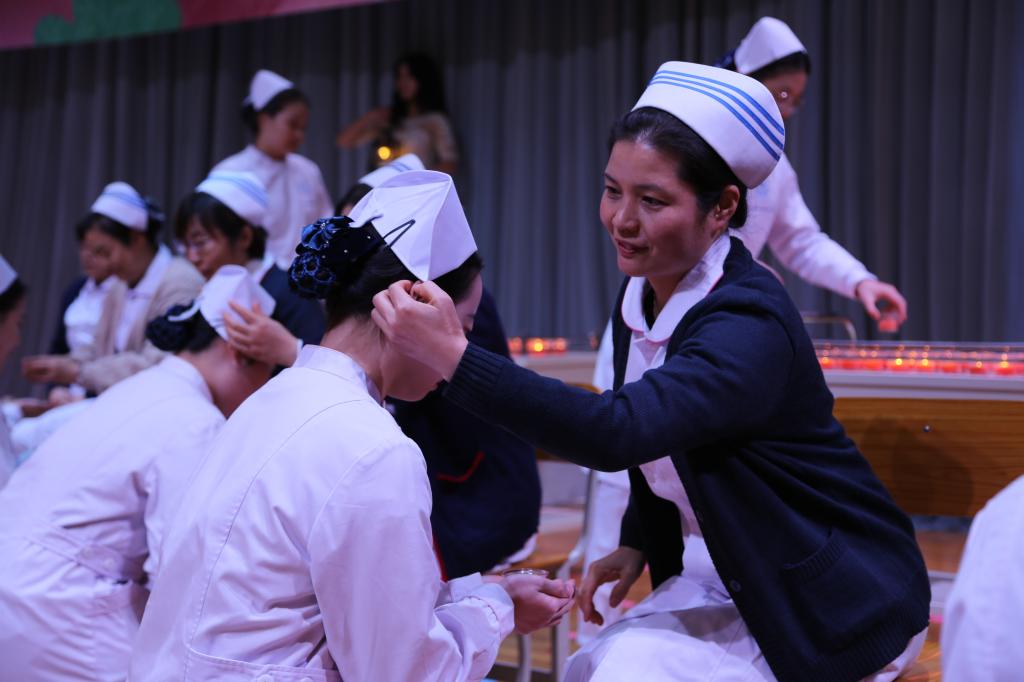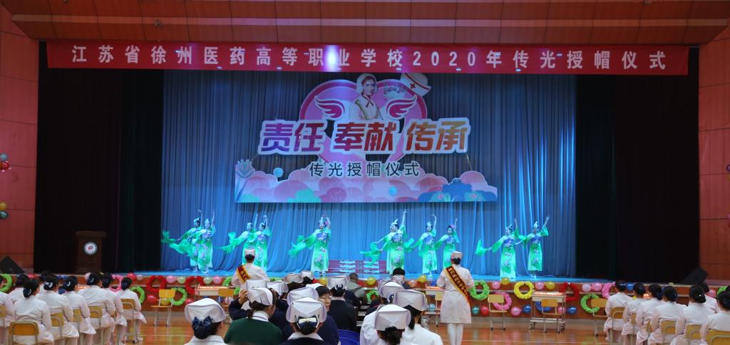 仪式邀请徐州市护理学会理事长夏静、徐州市第一人民医院护理部主任胡铭、徐州市第三人民医院护理部主任刘梅、徐州市中心医院护理部副主任王平、徐州市妇幼保健医院护理部主任彭燕、徐州市儿童医院护理部主任张春侠、徐州市东方人民医院护理部主任陶敏、徐州市贾汪区人民医院护理部主任黄世芳、徐州市矿务集团总医院科护士长陈英、徐州市中医院科护士长李美娟等护理前辈,为即将踏上临床护理实习岗位的护生传光授帽,副校长袁龙、佟光进和护理系师生代表参加了活动。