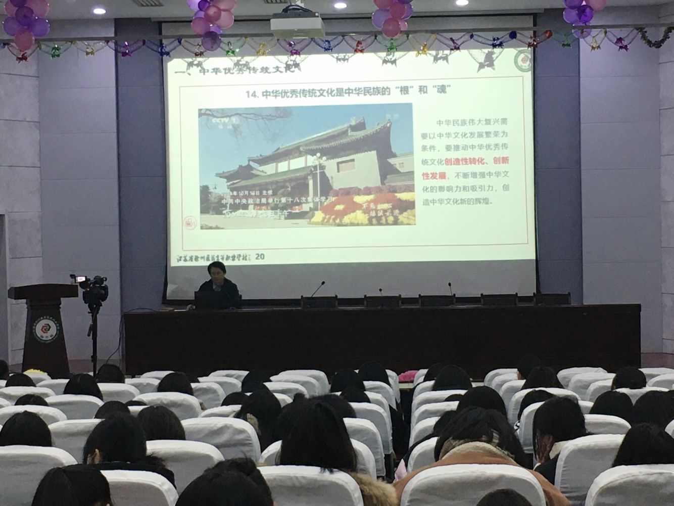 为帮助学生更加了解中华优秀传统文化,坚定文化自信,2020年12月22日下午,佟光进副校长在护理系报告厅开设了“汲取传统文化智慧 厚植文化自信根基”主题讲座。药学技术系、护理系、制药工程系学生代表聆听讲座。