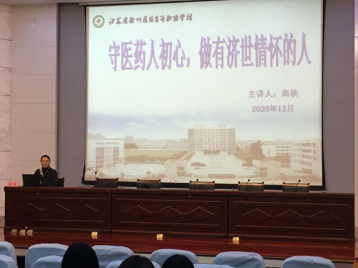 2020年12月29日下午,“思政大讲堂”活动在多功能报告厅举行,党委书记高侠开设了“守医药人初心 做有济世情怀的人”主题讲座。药学技术系、护理系、制药工程系学生代表聆听讲座。