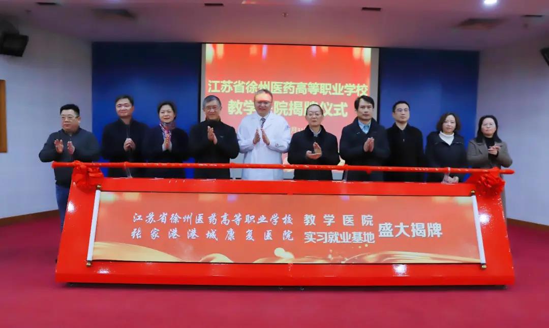 为不断加强专业建设,提高学生培养能力,拓宽学生实习与就业途径,学校与张家港港城康复医院达成合作,于2020年12月31日,隆重举行“江苏省徐州医药高等职业学校教学医院和实习就业基地挂牌仪式”。