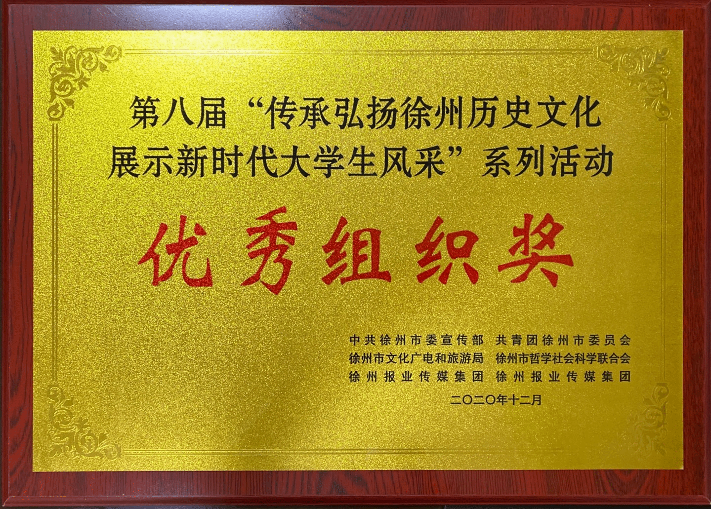 近日,第八届“传承弘扬徐州历史文化,展示新时代大学生风采”系列活动圆满落幕。该活动由中共徐州市委宣传部、共青团徐州市委员会、徐州市文化广电和旅游局、徐州市哲学社会科学联合会、徐州报业传媒集团、徐州广播电视传媒集团共同举办,到2020年已经是第八届?!镑攘π熘荨闭魑拇笕魑盗谢疃闹匾槌刹糠?,由我校团委牵头承办。