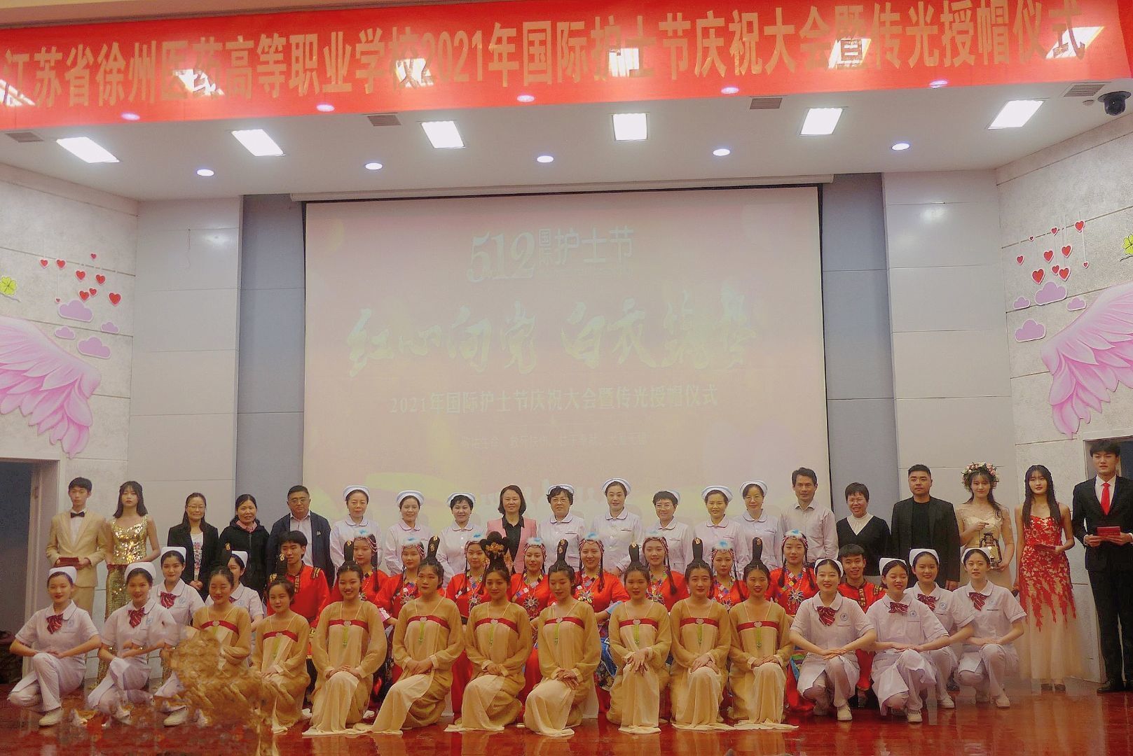 传承红色基因,创新发展护理。第110个国际护士节来临之际,恰逢中国共产党建党100周年,为激励护生赓续红色血脉、弘扬南丁格尔精神,增强对护理职业的认同感、对护理事业的责任感、对党和国家健康事业的使命感,5月11日下午,徐州医药高职校隆重举行“红心向党,白衣筑梦”2021年国际护士节庆祝大会暨传光授帽仪式。