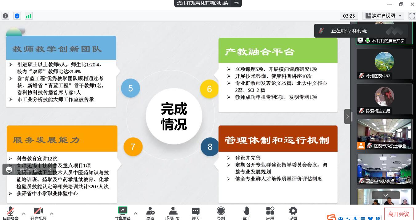 2022年12月7日下午,医药专业建设指导委员会组织召开了五年制高职高水平专业群建设线上研讨会,主任委员单位徐州医药分院设立了主会场,各成员校分别设立了分会场,主任委员、副主任委员、委员,各成员校专业群负责人、系主任、专业负责人等参加了会议。