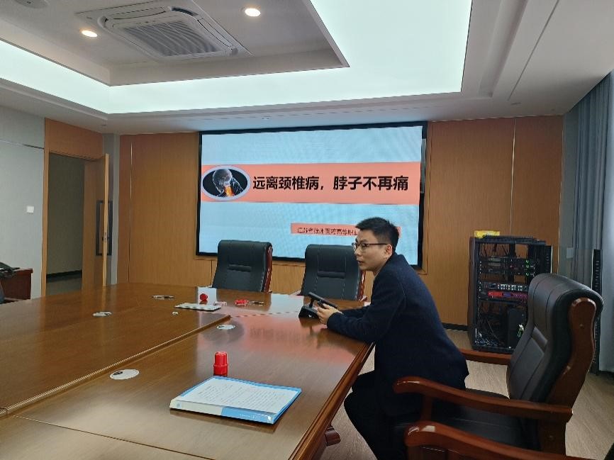 签约仪式后,学生工作处党支部委员程涛同志给参会的侯集村支部党员代表开展了《颈椎病的预防与治疗》的知识讲座,主要讲解了颈椎病的致病原因、临床表现及治疗与日常保健。通过此次讲座,使与会党员深入了解到当前颈椎病缓解方法、注意事项,同时还亲身示范了一套颈椎病保健操,听讲党员现场互动十分热烈,营造了志愿服务活动的良好开端。