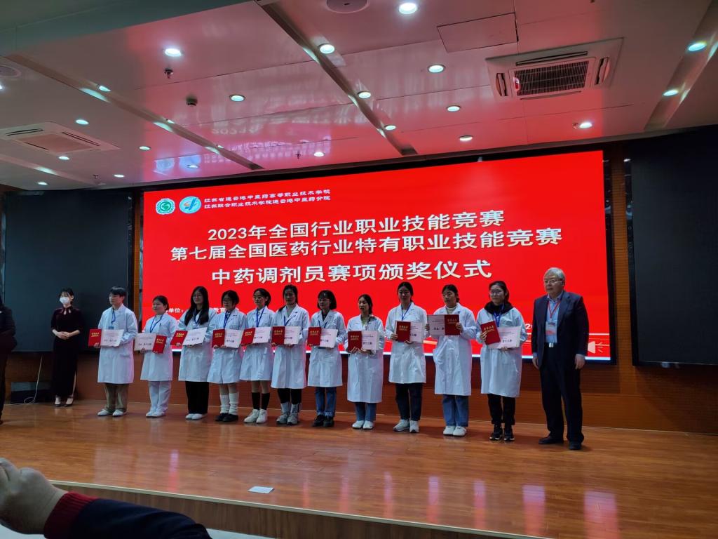 2023年3月24日至26日,2023年全国行业职业技能竞赛第七届全国医药行业特有职业技能竞赛中药调剂员赛项在江苏连云港举行,我校 18高职中药学1班路彤彤、梁树两名同学代表学校参赛,荣获两个单项一等奖,团体一等奖的优异成绩,刘丛丛老师被评为优秀指导教师。