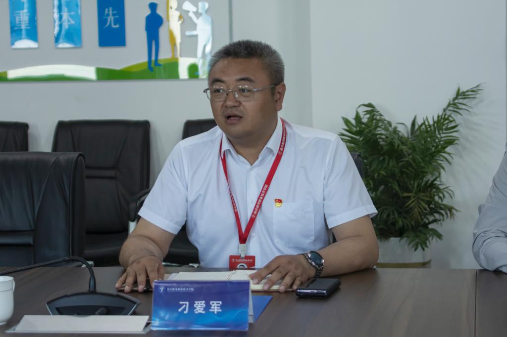 我校党委书记高侠对刁爱军院长表达了感谢,并介绍了学校的历史沿革、办学情况以及发展目标。希望在学校发展、专业建设、科研成果转化、产业学院建设等方面得到南京机电学院的指导。医疗器械系主任景维斌、科研处处长赵功宝、实训中心主任郑敏分别就负责的工作和有关问题同与会人员进行了广泛深入地研讨和交流。