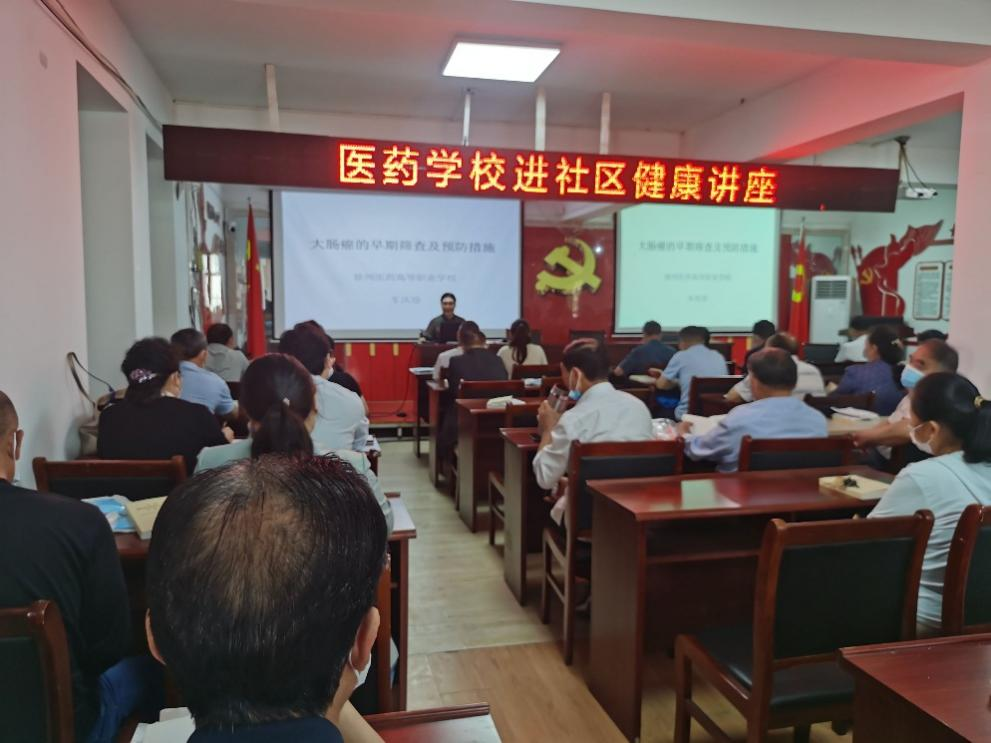 2023年5月20日,电教图书信息中心党支部一行六人到铜山街道同昌社区开展健康知识宣讲活动,由我部门车庆珍老师对社区居民开展“大肠癌的早期筛查及预防措施”主题讲座。