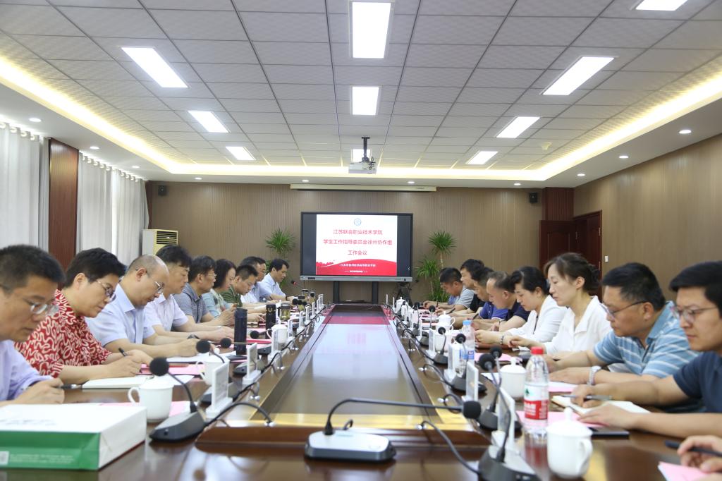 为贯彻落实学院学生工作指导委员会工作部署,研讨交流徐州协作组各办学单位学生工作,江苏联合职业技术学院学指委徐州协作组工作会议于6月20日在徐州医药分院召开。江苏联合职业技术学院副院长陶向东、徐州医药分院党委书记高侠、徐州高等师范学校党委书记校长苗苏莉、江苏模特艺术学校党委书记校长李乐、徐州财经分院纪委书记董夙慧、徐州经贸分院副校长刘永、徐州高等师范学校副校长唐剑、运河高等师范学校副校长汤秋、江苏模特艺术学校副校长陈颂、开放大学副校长胡钊涵、睢宁中专副校长杨永和在徐11所办学单位的学生工作处处长集体参加了活动。活动由协作组秘书长佟光进主持。
