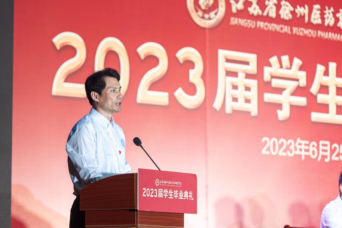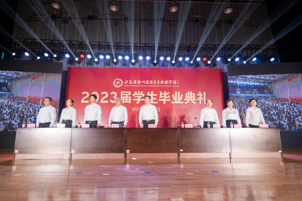 鸿鹄振翅,志在千里;云程发轫,万里可期。2023年6月25日下午,江苏省徐州医药高等职业学校在校体育馆内隆重举行2023届学生毕业典礼。1239名毕业生完成学业,踏上人生新征程。本次毕业典礼以“匠心筑梦系药校,扬帆致远再起航”为主题,为毕业生送上了一份难忘的毕业礼物。校领导、中层干部、教师代表、毕业班班主任以及2023届全体毕业生参加了毕业典礼仪式,齐聚一堂,共同见证这一重要时刻。典礼由校党委书记高侠主持。
