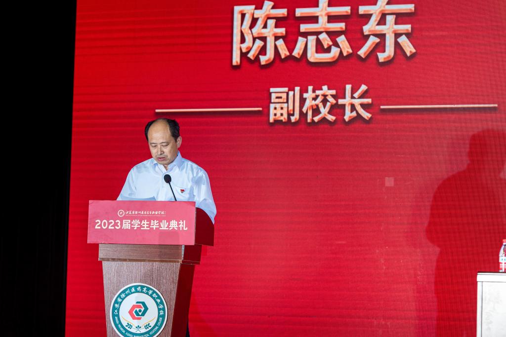 随后,由袁龙副校长宣读荣获国家奖学金、国家励志奖学金、2023年江苏省“三好学生”“优秀学生干部”、联院“优秀毕业生”学生名单并进行了颁奖;陈志东副校长宣读2023年优秀毕业生表彰决定并进行了颁奖;佟光进副校长宣读2023届毕业生校友工作联络员聘任决定并举行了校友联络员受聘仪式;校党委高侠书记宣读2023届毕业生毕业决定并为毕业生代表颁发了毕业证书。