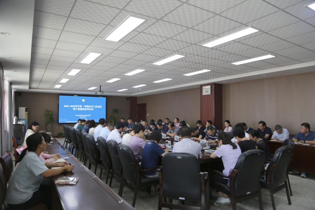 2023年9月1日,在徐州医药高职校2023年秋季新学期开学工作布置暨干部廉政教育会议上,学校纪委组织全体干部深入学习贯彻习近平总书记关于全面从严治党的重要论述和有关会议精神,纪委书记袁龙作廉政专题教育,并对相关专项整治工作进行提醒部署。校领导班子全体成员出席会议。