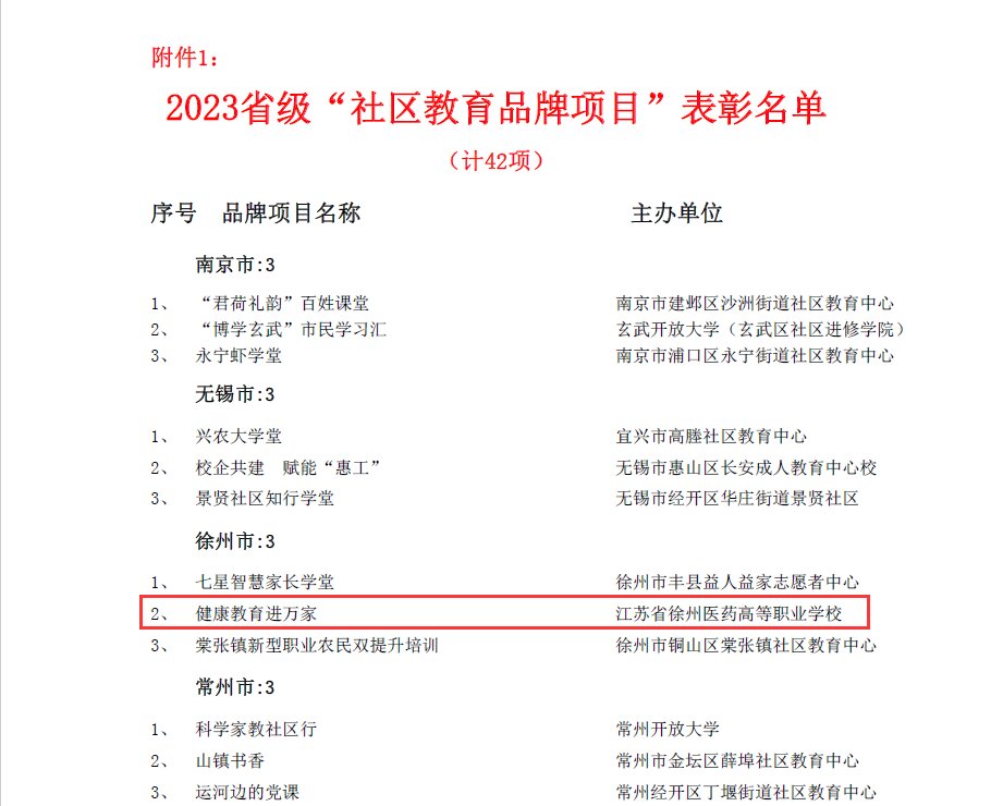 近日,我?!敖】到逃蚣摇毕钅砍晒θ胙?023年江苏省“社区教育品牌项目”。