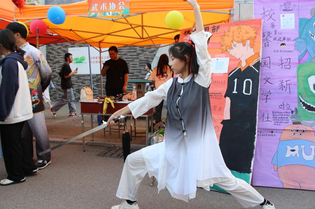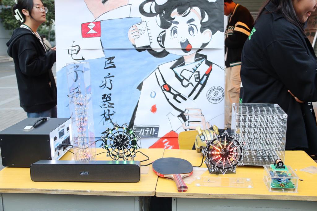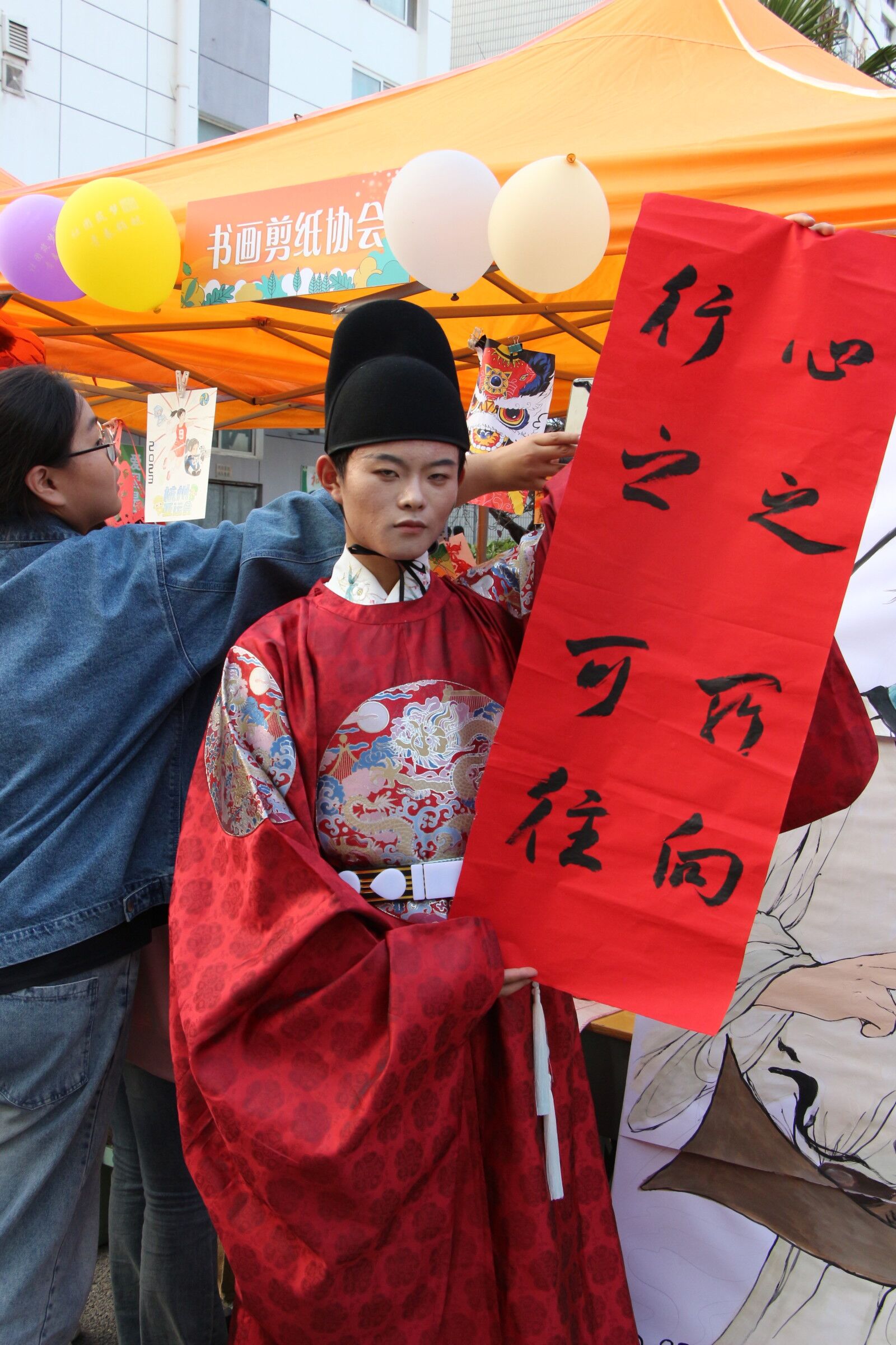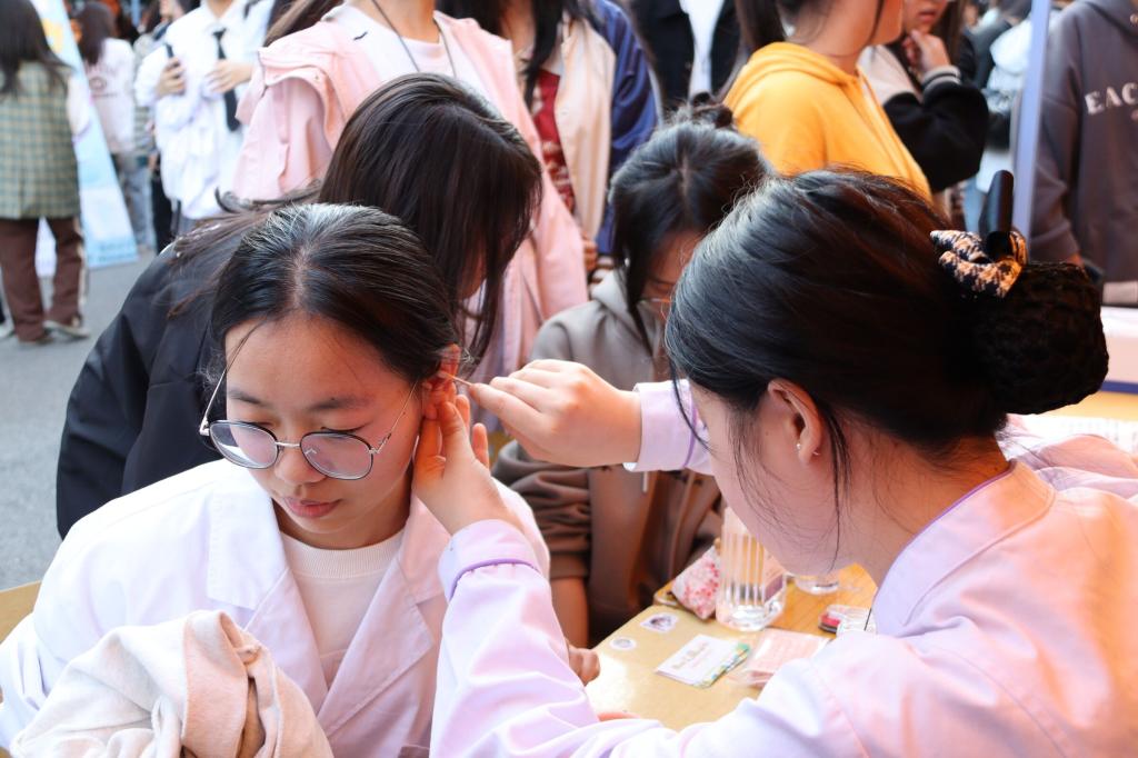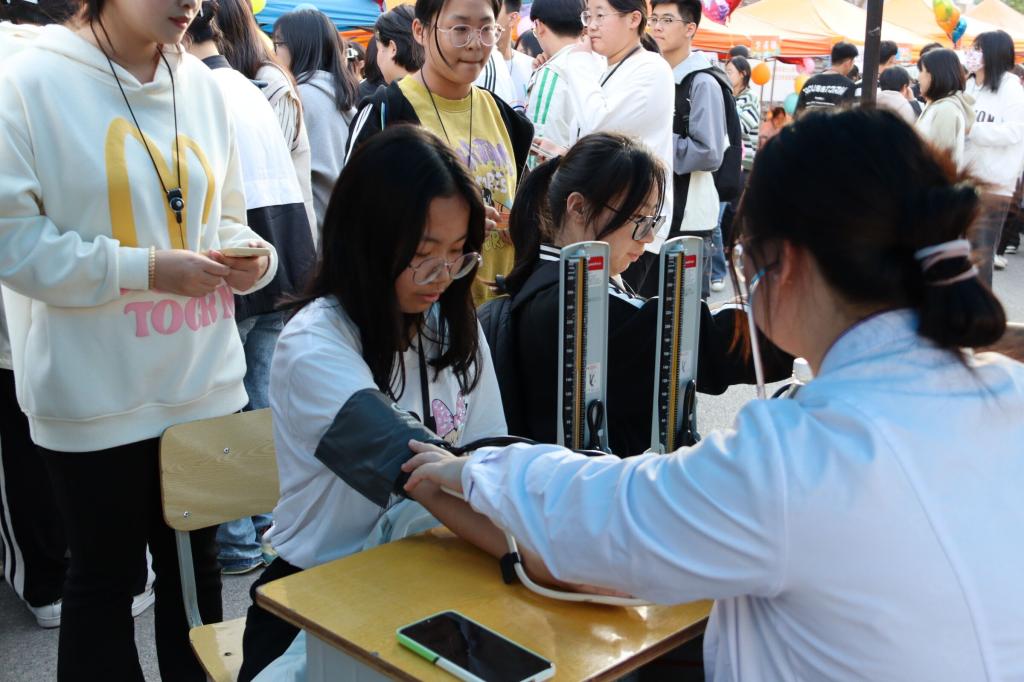 招新纳贤,成长相伴。不仅台上演出精彩纷呈,台下各个社团的招新活动也在有条不絮地进行着。现场共有50个社团参加本次社团文化节,各学生社团发挥特色,在展位精心设计趣味性、参与性、教育性兼顾的文化体验活动,同学们通过参与展位活动,加入心仪的社团。篮球协会组织“手指投篮”运动游戏,锻炼体验者的专注力和手眼协调能力;爱心诊所社通过测血压等活动传播“奉献、友爱、互助、进步”志愿精神;杏林养生协会展示中医养生保健服务活动,制作中医手工香囊、宣传中医养生理念;书画剪纸协会现场泼墨挥毫,展现中华文化的独特魅力;医用电子爱好者协会向大家展示科技与创新的成果;国旗护卫队一排排身着军装的护卫队尽显军人刚强坚毅的风采;健身协会围满跃跃欲试的健身爱好者......海报前,同学们认真阅读着各个社团的简介,寻找着志同道合的伙伴;帐篷旁,社员们耐心解答着同学们的问题,吸引萌新们的加入。