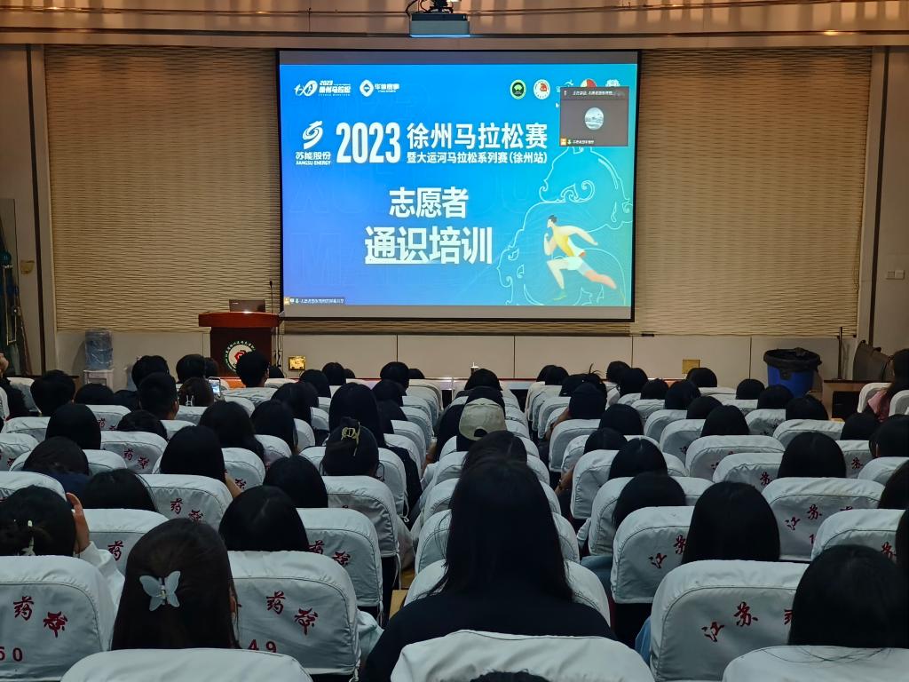 为充分做好2023徐州马拉松赛暨大运河马拉松系列赛(徐州站)志愿服务工作,提升志愿者的工作能力和专业知识,让志愿者更好的了解马拉松志愿服务事项,以更饱满的热情服务于比赛,在徐州马拉松组委会、团市委的统一部署下,我校徐州马拉松赛志愿者顺利完成所有赛前培训项目。