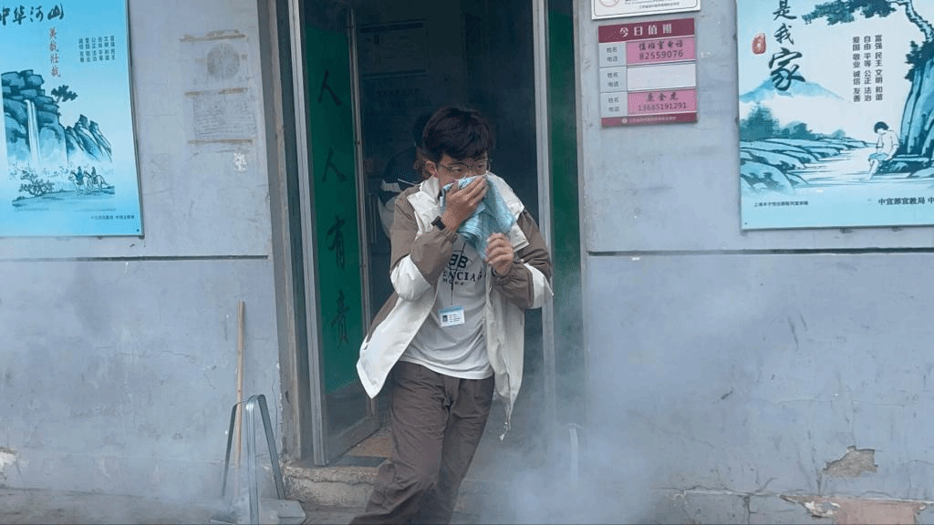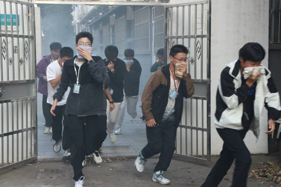 为了确?;疃涞绞荡?,学生工作处制定了周密的消防疏散演练方案,并要求班主任召开班会,向2023级新生传达安全知识以及演练注意事项。当天下午16点20分,伴随着火警铃声,紧张有序的疏散演练拉开了帷幕。只见宿舍楼门口冒出了模拟火灾现场的烟雾,现场顿时“浓烟滚滚”。宿舍生活老师迅速到岗,同学们快速拿起湿毛巾,捂住口鼻,弯下腰,按疏散路线从“火场”逃离。到达指定安全地点后,各班迅速清点人数,并及时把学生人数上报给现场总指挥。所有人员在这次疏散过程中做到了有序、迅速撤离,消防通道畅通,无一学生遗漏,无拥挤意外发生。