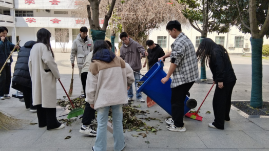 3月14日下午,在班主任和团支部的带领下,本班级全体同学积极开展了“弘扬雷锋精神,争做文明学生”的主题活动,协助校内进行绿化养护的3位老人开展春季树木养护活动。在本次活动中我们完成了冬季树木保护薄膜的拆除、折叠、落叶的清扫,受到了夸赞与好评。