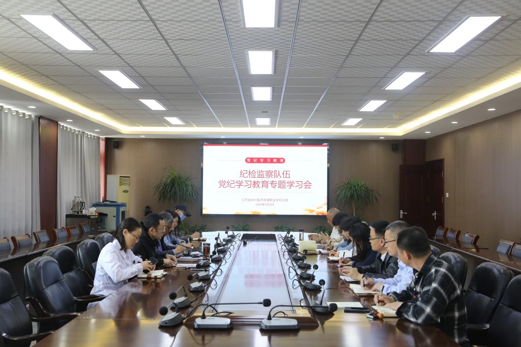 5月6日,徐州医药高职校纪委召开纪检监察队伍党纪学习教育专题学习会,贯彻落实中央纪委办公会议和二十届中央纪委常委会第九次集体学习会议精神,组织学习贯彻新修订后的《中国共产党纪律处分条例》(以下简称《条例》),部署学校纪检监察队伍开展党纪学习教育,要求纪委委员和各党支部纪检监察工作人员切实提高政治站位,坚决扛起政治责任,强化使命担当,认真抓好落实。校党委委员、纪委书记袁龙出席会议并讲话。
