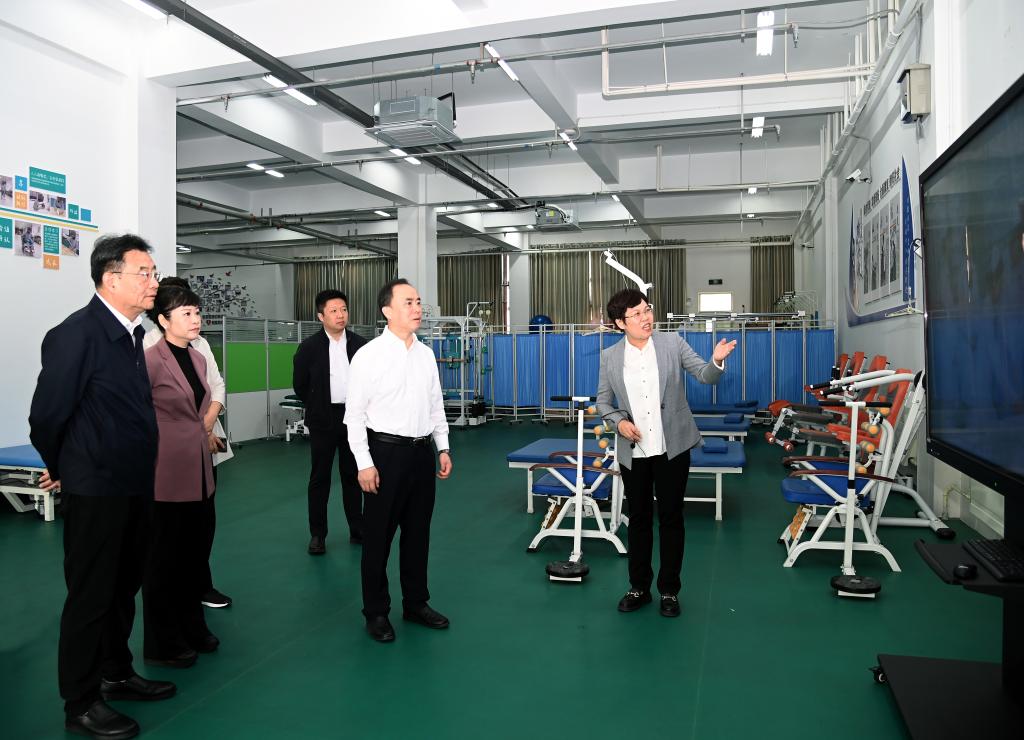 宋乐伟走进固、液体制剂实训基地,康复护理实训中心等处,了解我校专业设置、人才培养、招生就业等情况,对我校建设发展取得的成效表示赞许。宋乐伟指出,职业教育是推动科教融汇、产教融合的重要阵地。希望学校以新校区建设启用为契机,坚持内涵式发展,精准对接市场需求,放大自身优势,彰显专业特色,为徐州生物医药产业发展和区域医疗中心建设提供智力支撑。