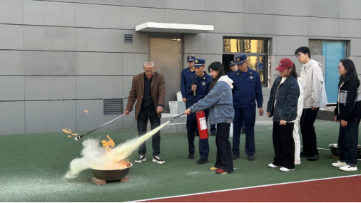 消防疏散演练结束后,安全保卫处权启山老师在学府校区为全体师生详细讲解了灭火器的使用方法,并指导学生积极参与体验。铜山区消防救援大队的朱信涛工程师从校园生活安全的角度为大家普及了安全知识。学生工作处程涛副处长对本次疏散演练进行了总结。在东湖校区,经开区消防大队东湖站站长张政同样为师生讲解了灭火器的使用方法,并现场指导学生进行灭火器的演练。安全保卫处汤勇峰处长再次强调了校园生活安全的重要性,学工处张原振老师也对演练进行了总结。
