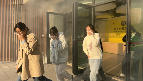本次演练由学工处与安保处协同策划,专门成立了消防疏散应急小组,并清晰界定了各成员的职责与分工。当天下午4点20分,宿舍楼值班生活教师利用广播系统发布消防警报,学生们随即按照预先规划的疏散路线有序撤离。