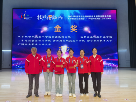10月28日—11月1日,2024年世界职业院校技能大赛总决赛医药卫生赛道(一)中药传统技能小组(赛项)争夺赛在青海卫生职业技术学院举行,来自全国29个省市自治区的55支参赛队伍同台竞技。我校制药工程系参赛选手魏梦雅、薛轶楠在刘丛丛、李琼两位老师的指导下,赛场上展现了高超的技能操作水平、良好的职业素养和完美的团队协作精神,荣获金奖第一名,作为该赛项唯一一支队伍,进入下一阶段排位赛。