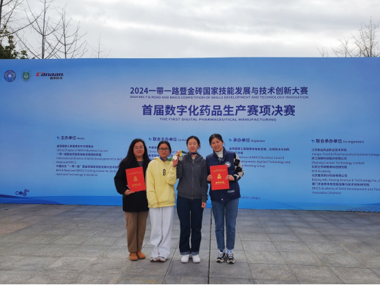 匠心铸就成才梦想,技能创造精彩人生。11月16日—19日,2024一带一路暨金砖国家技能发展与技术创新大赛首届数字化药品生产赛项决赛在江苏淮安成功举办,来自全国56所高校,112名参赛选手同台竞技。我校制药工程系21高职药品生产技术班丁佳、21高职中药制药班张文婷两名参赛选手荣获此次竞赛“二等奖”,陈晨、赵冰洁两位老师荣获“优秀指导教师”称号,我校荣获“优秀组织奖”。