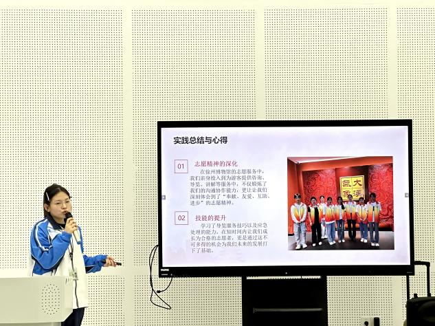 经验交流,分享实践智慧。表彰环节过后,经校、系学生会遴选的9名先进个人代表依次上台分享了他们在2024年暑期社会实践中的宝贵经验和深刻感悟,同学们结合PPT,讲述了自己深入社区、乡村、企业等地开展的文化传承、党史学习、志愿服务、乡村振兴、社会调研等形式多样的实践活动。通过同学们的分享,不仅为广大同学今后参与社会实践活动提供了可借鉴的思路和方法,更激发了大家投身实践的热情。