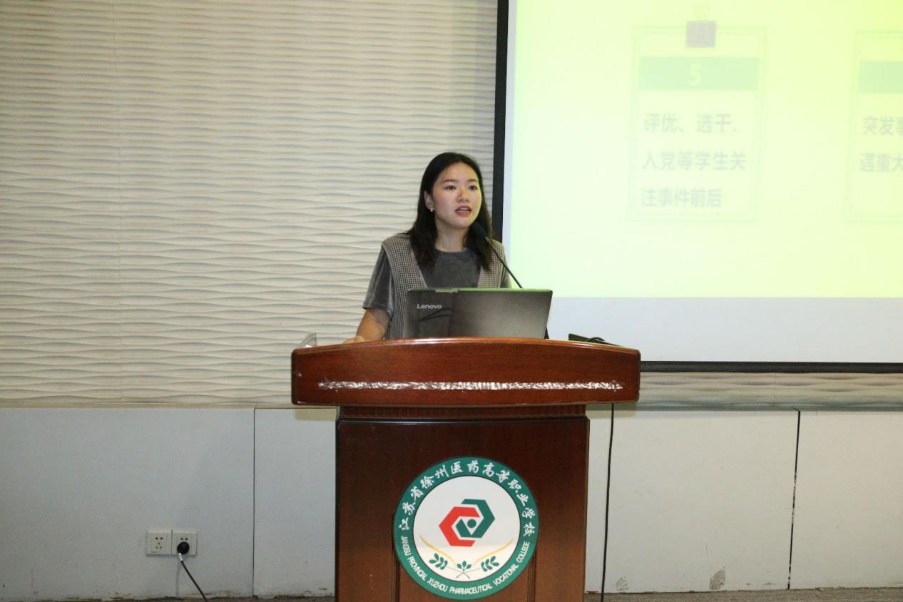 讲座中,我校心理老师刘原彤向同学们讲解了心理危机基础知识,讲述了心理危机的表现、诱因、易感人群及进行干预的重要时间点,并从生理、情绪、认、行为等方面罗列了可觉察的几种常见情况,引导学生干部善于观察、善于发现身边隐藏在细微之处的心理危机。刘老师深入浅出地分析了朋辈互助对于心理危机预防和干预的重要性,鼓励宿舍长充分发挥宿舍“气象员”作用,密切关注身边同学的心理状态和行为反应并定时定向汇报。