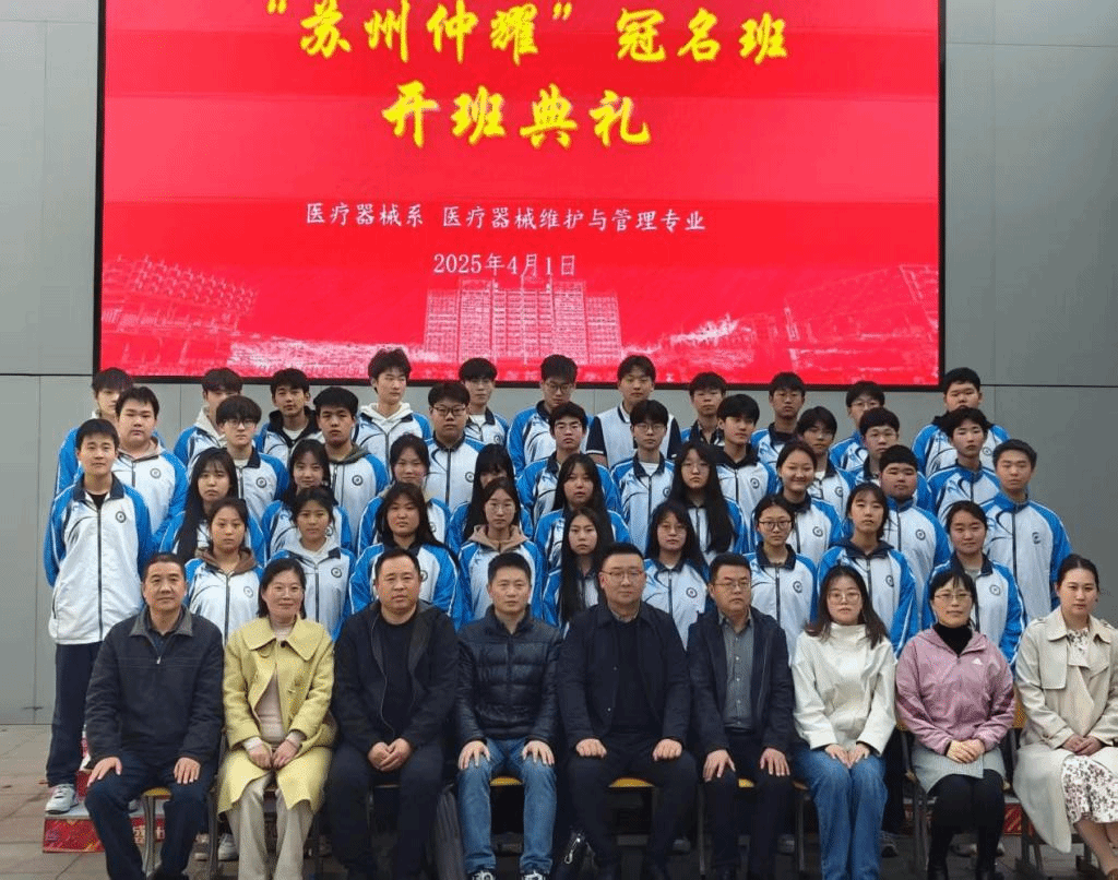 典礼上,医疗器械系主任景维斌发表致辞。景主任表示,此次合作是学校深化职业教育改革、服务区域经济发展的关键举措。通过‘苏州仲耀班’,我们将共同开发智能医疗设备运维、数字化生产管理等前沿课程,为学生提供‘课堂+实践’的双重成长平台,助力他们成为兼具专业素养与智能技术能力的复合型人才。