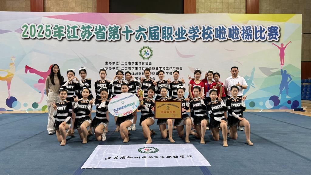 2025年6月4日至5日,由江苏省学生体育协会主办的第十六届职业学校啦啦操比赛在徐州财经高等职业技术学校火热开赛。来自全省27所职业院校的600余名运动员齐聚彭城,以活力四射的舞姿和精湛的技艺展开巅峰对决。我校灵枢跃动啦啦操队在校领导、部门领导的支持下,王清克、秦梅两位教练的带领下,最终斩获自由舞蹈啦啦操单项冠军与团体二等奖两项殊荣,荣誉的背后,是师生团队近60天的拼搏与坚守。自组队以来,团队日常遵循科学制定的“三阶训练法”,队员们以惊人毅力突破极限,队长陈艺蕾和全体队员膝盖虽然磕的青紫仍坚持带伤训练;副队长张子君和张雅慧为攻克侧手翻和屈体分腿跳,每天加练至晚上九点,此次获奖,不仅是对队员们竞技水平的肯定,更是对我?!耙匀傺?、以体树人”宗旨的生动实践。我校将以此次比赛为契机,让更多学子在体育竞技中锤炼意志品质,在团队协作中领悟体育精神,在青春舞台上绽放职教风采!