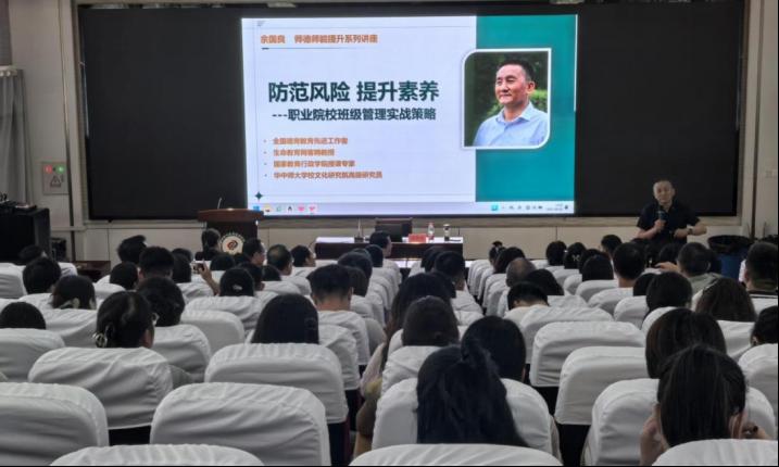 本次培训邀请了全国德育工作先进个人、全国职业院校学生工作者联席会特聘专家余国良,开设了题为《防范风险,提升素养——职业院校班级管理实战策略》的专题讲座。余老师结合大量实际案例,系统阐述了班级管理中常见风险的识别与应对策略,为班主任提供了实用而深入的工作指导。
