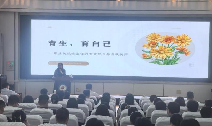 同时,学校还邀请了中国企业管理无锡培训中心主任、党委书记梅亚萍,开设了《育生,育自己——职业院校班主任的专业成长与自我关怀》的专题讲座。梅老师从班主任工作实际出发,强调在育人的同时也要注重自身成长与心理关怀,为班主任的可持续发展提供了宝贵建议。