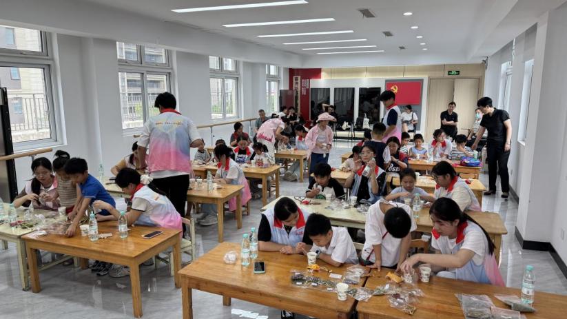 “小小药师”活动无疑是孩子们最期待的环节。在这里,他们化身为小小药剂师,亲手制作中药茶饮和驱蚊香囊。志愿者们提前精心准备了山楂片、陈皮、枸杞子等茶饮药材和艾草、丁香、薄荷等驱蚊药材。在制作消暑中药茶饮时,孩子们仔细观察不同中药材在茶汤中颜色变化的奇妙过程,聆听志愿者讲解各种中药材的功效,用感官去探秘大自然的馈赠。而在制作驱蚊香囊时,志愿者们示范如何按比例搭配填充药材,孩子们则专注地用彩色绳结装饰香囊,有的还在卡片上写下“送给妈妈”的暖心话语,将满满的爱意融入其中。当一个个充满药香的手工成品在孩子们手中诞生时,他们兴奋地举着自己的作品互相展示,脸上洋溢着自豪与成就感。那一刻,中医药文化不仅在孩子们心中留下了深刻的印记,更通过他们的作品传递出了温暖与爱。