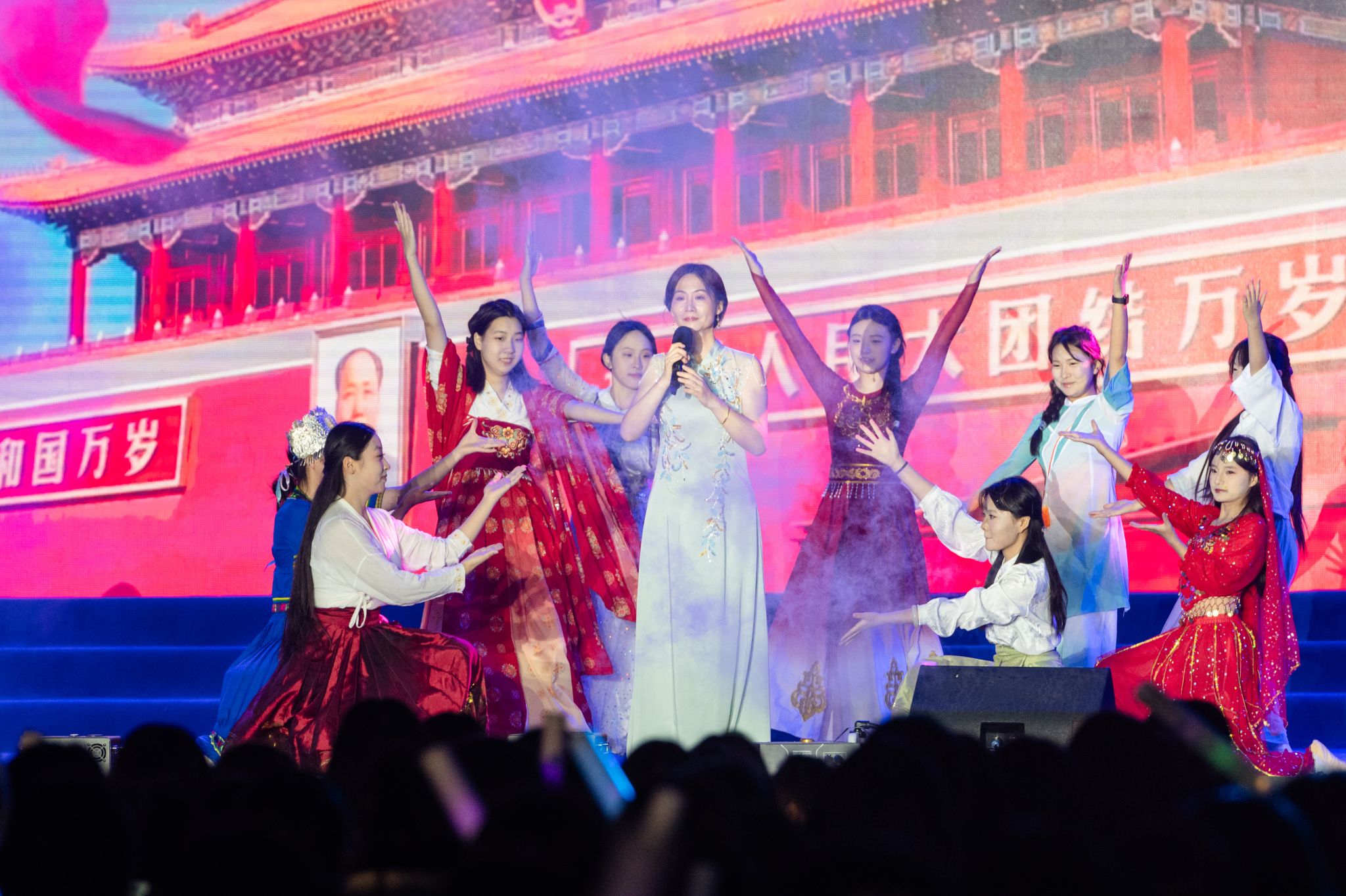 演出围绕家国情怀、中华优秀传统文化与青春活力展开,涵盖歌伴舞、器乐演奏、武术表演、诗朗诵等多种表演形式,亮点纷呈。既有《美丽中国》《天地龙鳞》《铭记》传递家国深情,也有乐器演奏《鼓瑟筝鸣·释风华》、四大名著影视剧歌曲联唱《经典咏流传》、武术表演《武冠风华》等展现中华优秀传统文化魅力,舞蹈《雨涧春行图》《烟雨鎏金》尽显艺术典雅之美,节目《是妈妈是女儿》《亲爱的你啊》动情演绎,催人泪下,更有《奔跑的青春》《我和2035有个约》《淋雨一直走》《青春派对》《天外来物》等尽显学子蓬勃朝气。教师、家长、优秀毕业生、在校学生同台参与的诗朗诵《逐梦起航》凝聚多方期许,引发全场共鸣。当校歌《为梦为爱》的旋律响起,全场沸腾,师生们高声合唱,在激昂的青春旋律中,晚会落下帷幕。
