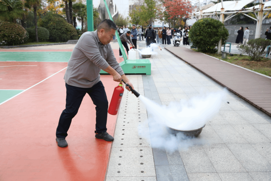 活动聚焦第34个全国消防日“全民消防、生命至上——安全用火用电”主题,安保处消防管理人员现场演示灭火器“提、拔、握、压”四步操作规范及技巧,所有参加活动的职工有序规范演练。整个演练过程紧张有序,教职工们表现出了较高的应急处置能力与团队协作精神。通过此次演练,大家不仅熟练掌握了灭火器的使用方法,还深刻体会到火灾扑救的紧迫性与重要性。