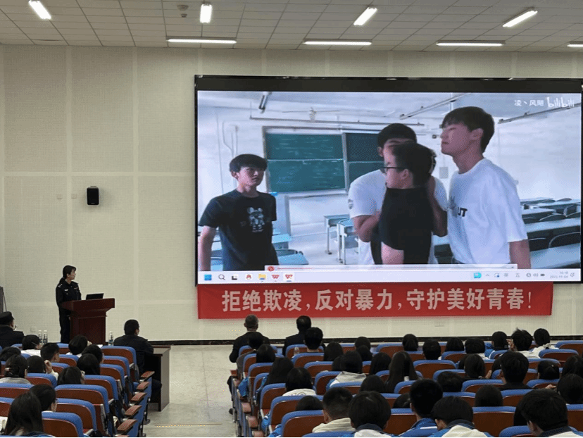 讲座中,盛丹醒警官以“对校园欺凌说‘不’”为主题,结合真实案例,深入浅出地讲解了校园欺凌的表现形式、危害后果及应对方法。张明才警官聚焦防范电信网络诈骗,通过分析近期高发的刷单返利、冒充客服、游戏装备交易等诈骗手段,揭示了诈骗分子的常用套路。