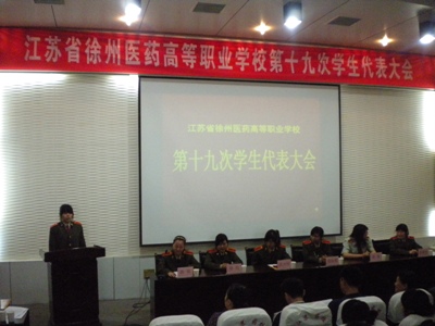 本次学生代表大会由原学生会副主席陈瑶同学主持。大会在雄壮的国歌声中开幕。首先,徐州医药高等职业学校党委高侠副书记开幕辞,高书记对上一届学生会的工作作出了充分的肯定,同时也指出了学生会管理工作中存在的不足,高书记勉励我们校学生会要立足监督、服务、协调的基本原则来开展工作。之后学代会审议通过了原学生会主席沈立叶同学对十八届学生会工作的汇报,沈立叶同学的汇报不但向全体同学汇报了原学生会工作的成绩,而且对即将产生的新一届学生会成员给予了鼓励,希望他们能起榜样带头作用,认真组织学校的各项活动,为构建和谐校园贡献力量,使学校建设更上一个新的台阶。为表彰成绩突出的学生会组织,学代会还对校学生会和基础部与生物工程系学生分会授予了“优秀学生会”光荣称号并颁发了锦旗,