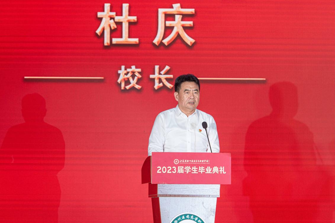 最后,杜庆校长紧扣“匠心筑梦系药校,扬帆致远再起航”主题,寄语大家以优秀校友的成长经历和卓越业绩为毕业生示范引领,勉励成长;以古籍经典启迪的思想智慧和境界格局为毕业生思想鼓舞,精神激励;以名言警句昭示的乐观精神和家国情怀为毕业生诠释担当,明晰责任。要坚守理想,树立无比坚定的信心;要博学笃行,养成终身学习的习惯;要坚持锻炼,保持热爱生活的心态。坚持心无旁骛,笃行奋进;相信天道酬勤,力耕不辍;牢记不负韶华,追求卓越;要强健充满朝气的体魄,锻造高尚健康的人格,磨炼持之以恒的毅力,增强敢于尝试的胆识;追求“大学问”,开拓“大视野”,练就“大格局”。