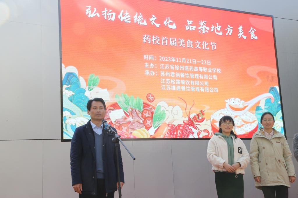 11月21日上午,美食文化节正式开幕。副校长佟光进、相关职能部门的领导、师生代表共同出席了开幕式。佟光进副校长致辞并宣布学校首届美食文化节开幕。佟光进在致辞中表示中国饮食文化博大精深,徐州作为两汉文化发祥地,更是中华饮食文化的一个重要流派。本次美食文化节的开展不仅有地方美食的品鉴,非遗产品展示,还有厨艺小课堂可以让同学们前来进行现场体验。通过展示美食的灿烂文化,让同学们体验美食,感受文化,投身劳动,收获健康,提升后勤服务育人理念,展现学校多元化育人方式。